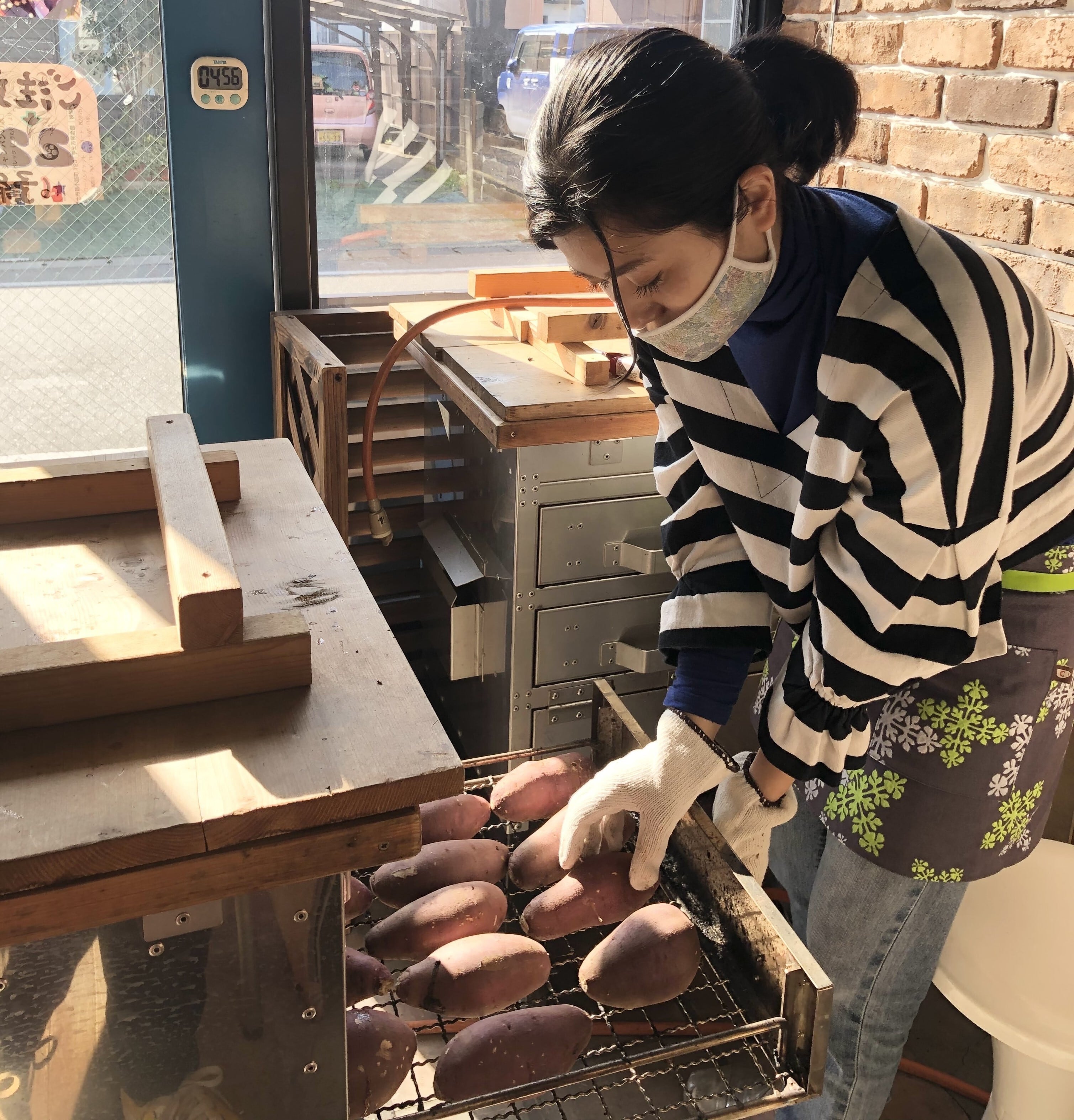 それぞれのさつまいものベストな焼き具合を見極めます